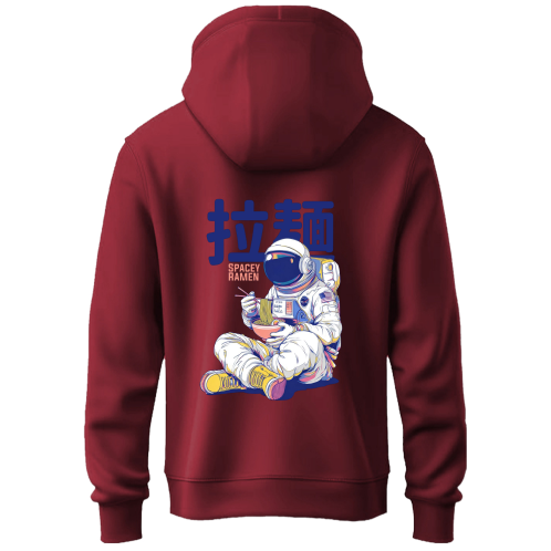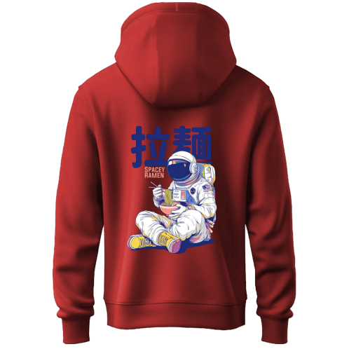 Even astronauts get the munchies. The Spacey Ramen Hoodie serves up a slice of orbital life, featuring a chill explorer enjoying a steaming bowl of noodles in zero gravity. Blending sci-fi aesthetics with street-style Japanese typography, this hoodie is the ultimate comfort wear for your late-night food runs or galaxy-brained study sessions.